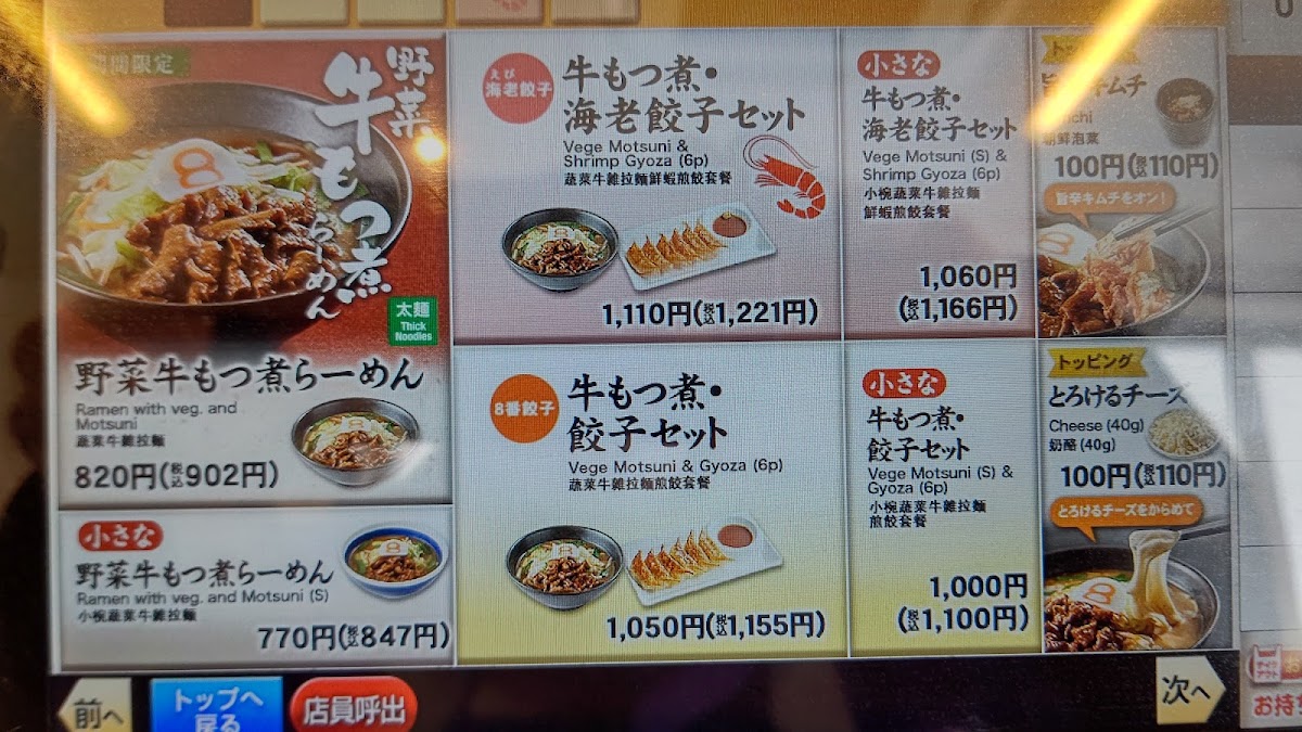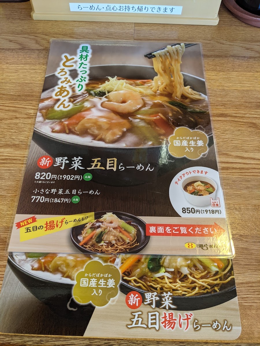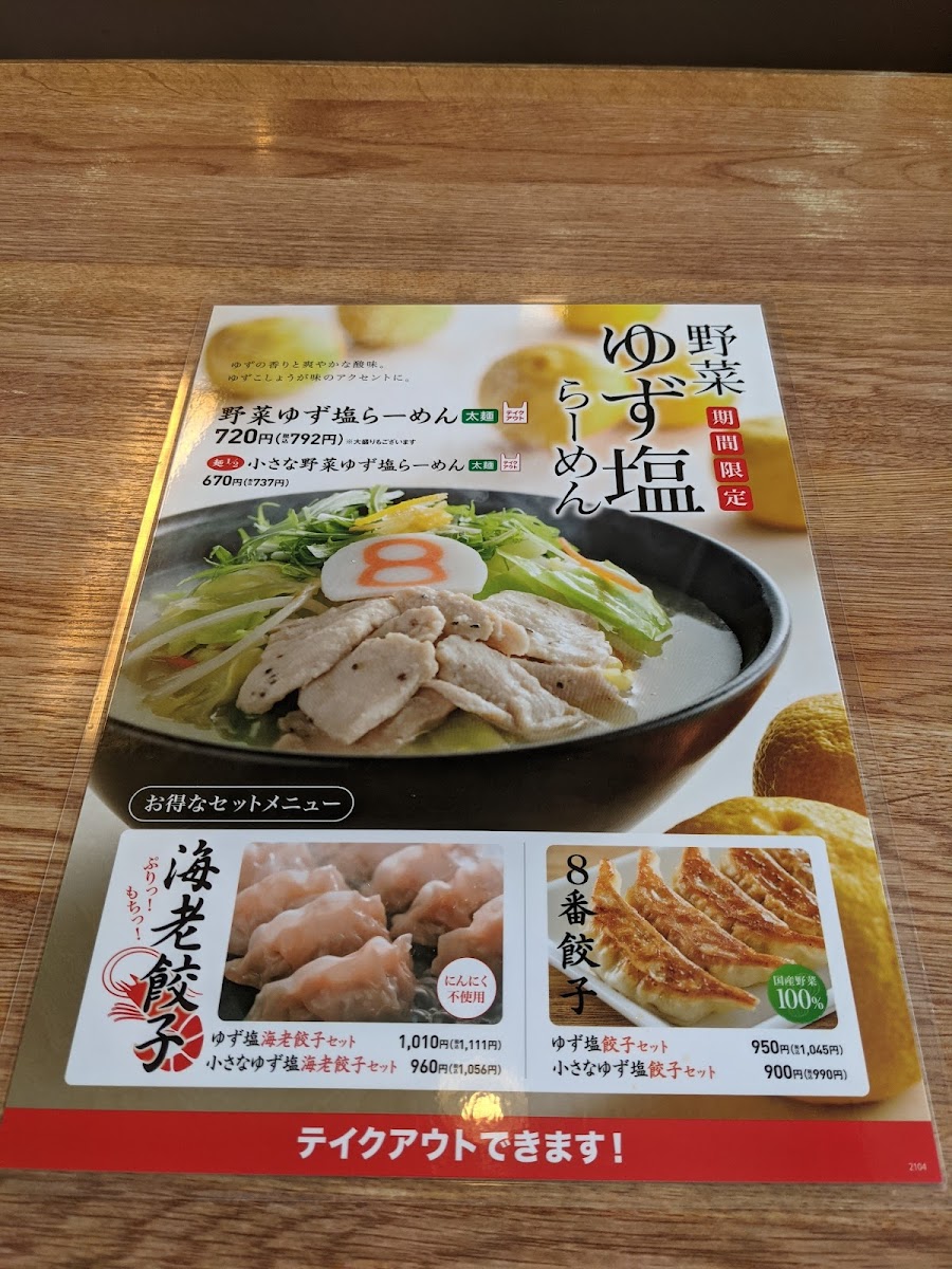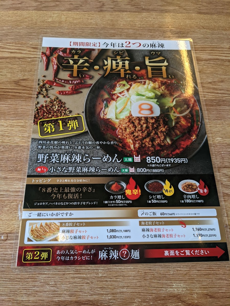 The menu at Hachiban Ramen Kashima offers an impressive variety of hearty and flavorful dishes, with something for everyone. Their ramen selection is extensive, featuring staples like the 唐麺, a bold and spicy choice, and the comforting しおらーめん&小チャーハン, which pairs a light and savory salt ramen with a small portion of fried rice. For those craving something richer, the bセットみそバター offers a creamy and satisfying miso-butter ramen, while the 野菜 らーめん味噌野菜増し provides a delightful veggie-packed miso ramen. If you're visiting during the limited-time offerings, the 野菜ゆず塩ラーメン 期間限定 is a refreshing and citrusy ramen experience. The 酸辣湯麺 delivers a perfect balance of sour and spicy flavors, while the とんこつ白湯ラーメン serves a rich and creamy tonkotsu broth for a fulfilling meal. Their side dishes are just as enticing, with crispy 8番餃子 and savory ぎょうざ that complement any meal. For something unique, try the 野菜牛モツ煮ラーメン, which combines tender beef tripe with vegetables in a savory broth. If you’re looking to cool down, the れいめん (cold ramen) and ざる ラーメン offer a refreshing twist. The 野菜ラーメン塩&海老餃子 pairs salt-based vegetable ramen with shrimp gyoza, a perfect balance of light and satisfying. Finally, don’t miss the mini 炒飯, a tasty fried rice dish that rounds off any meal. Whether you're in the mood for a classic ramen, a seasonal special, or a hearty side, Hachiban Ramen Kashima has a diverse and mouthwatering menu that promises to satisfy all tastes.